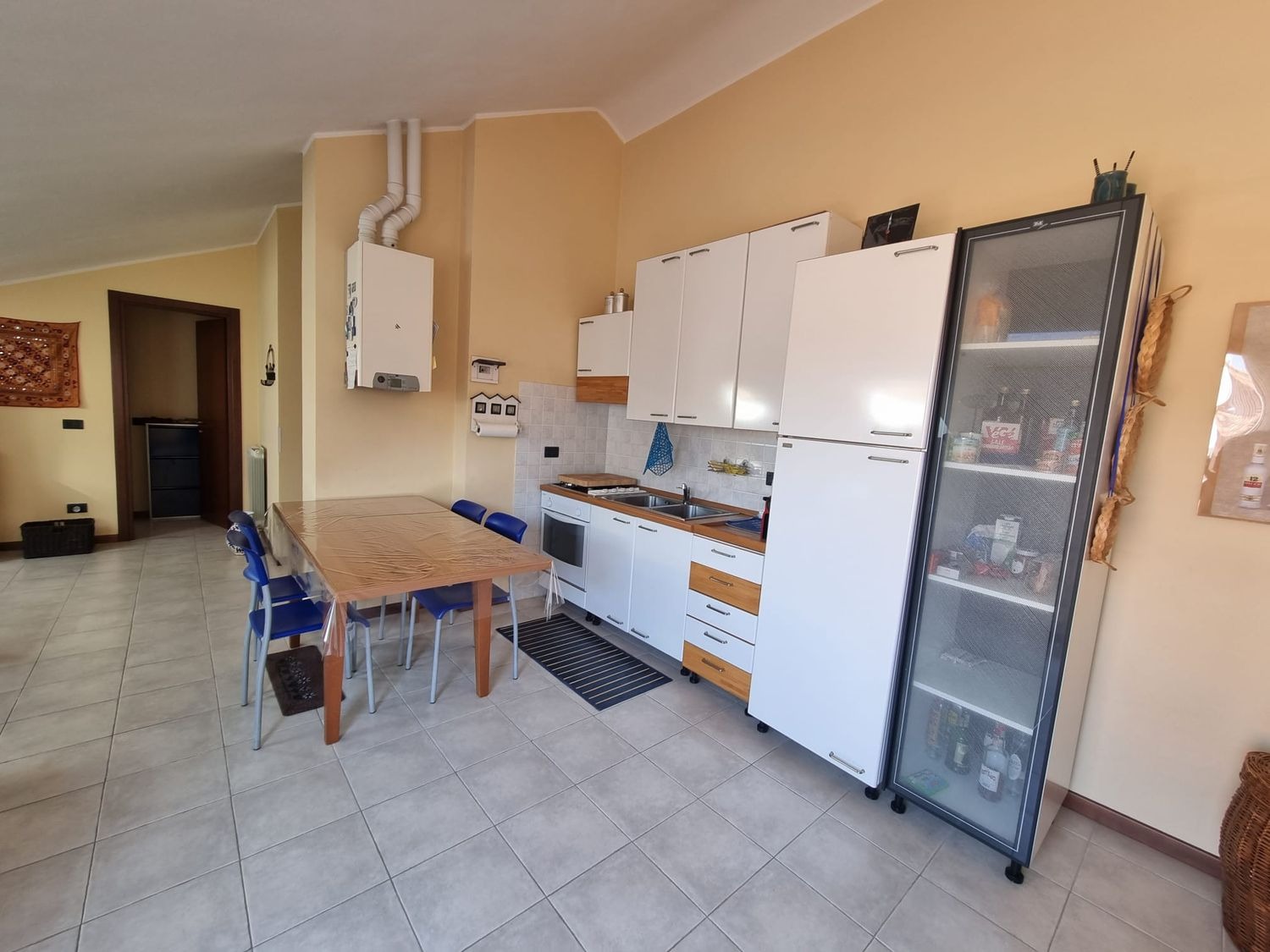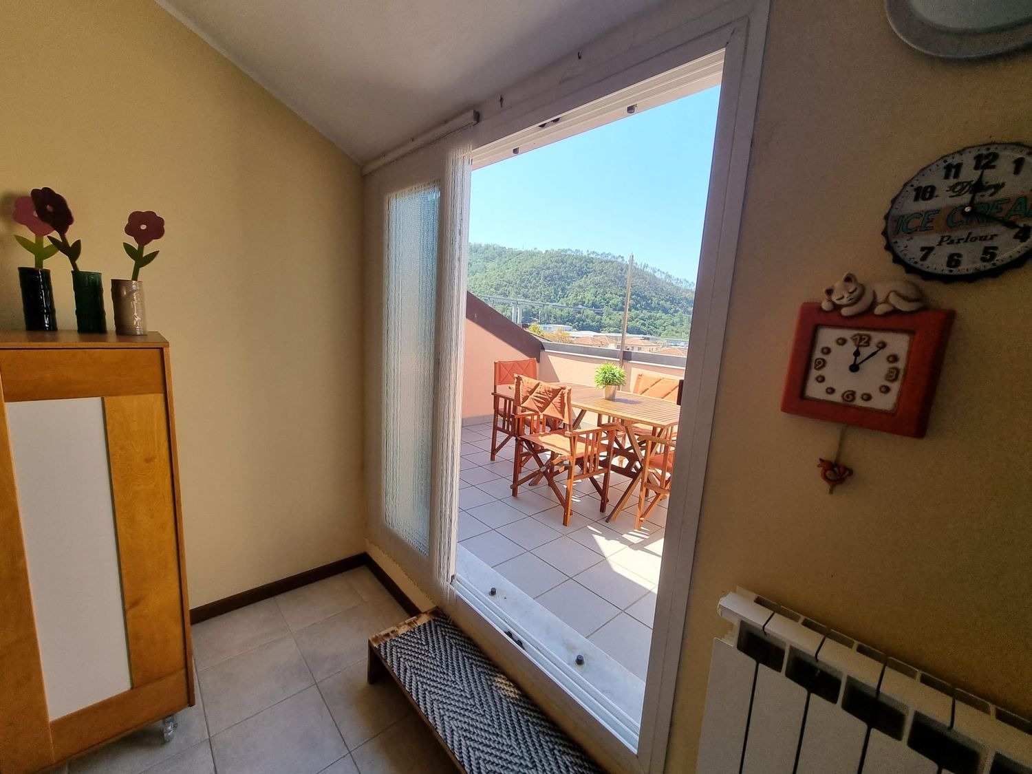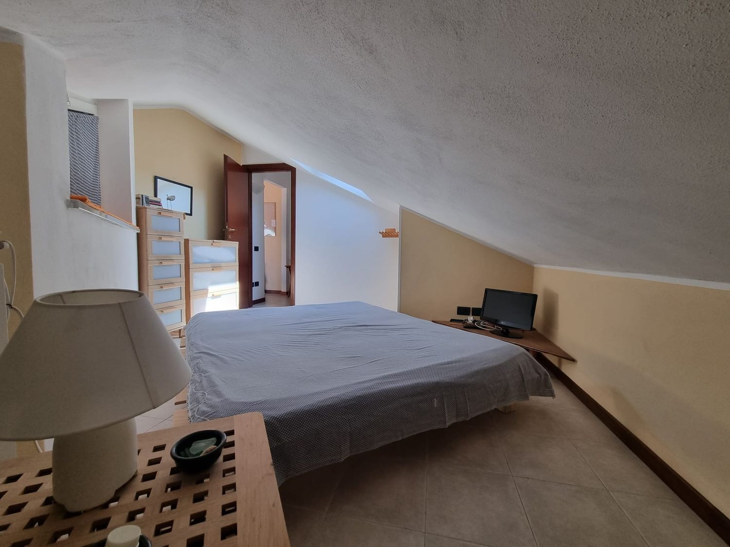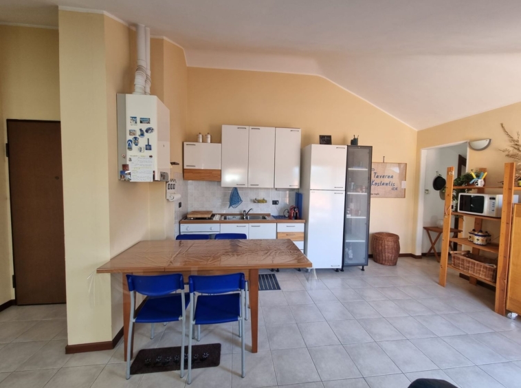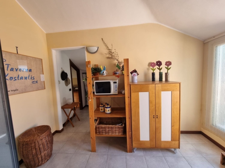 La casa è composta da un soggiorno accogliente con zona pranzo e angolo cottura. Da qui, le porte finestre conducono al bel terrazzo abitabile, uno spazio che si presta perfettamente per momenti di relax. La proprietà dispone poi di una camera da letto principale, di una seconda camera più piccola e di un bagno con finestra. Il riscaldamento è autonomo.